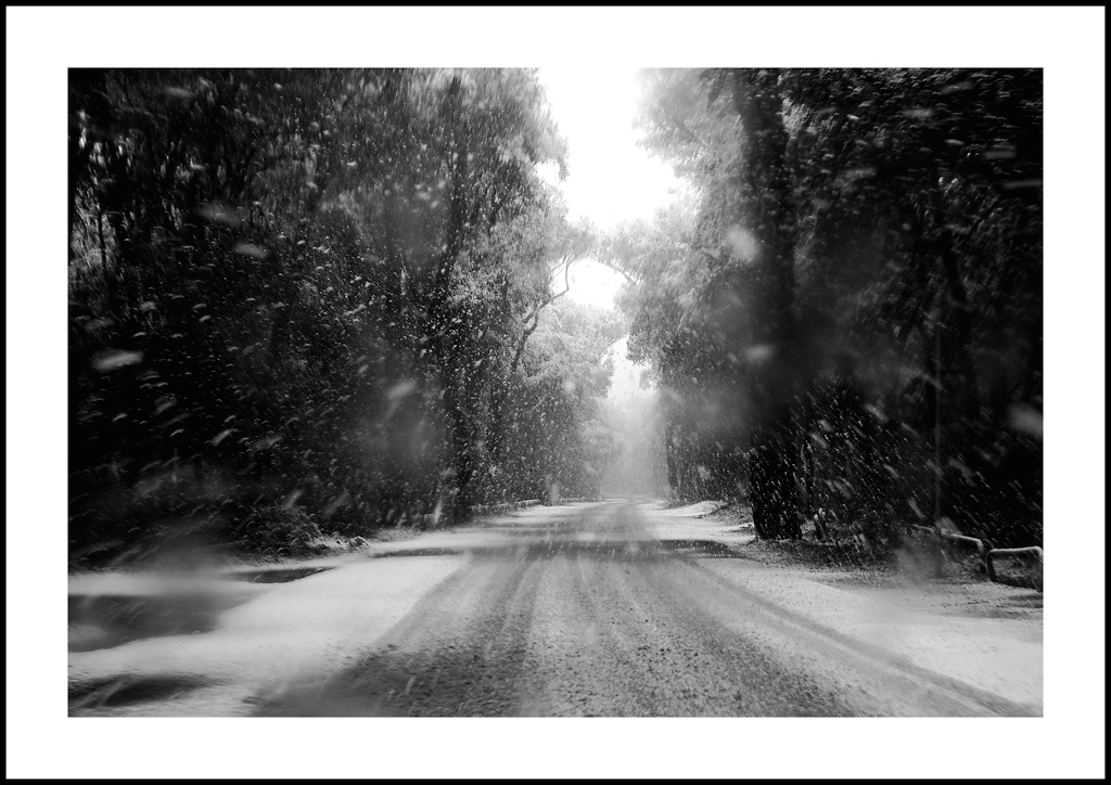 bella bella! Vera e surreale insieme. Con questa immagine ci coinvolgi in questo viaggio in auto nella bufera. Anche i vetri un pò appannati contribuiscono assai!