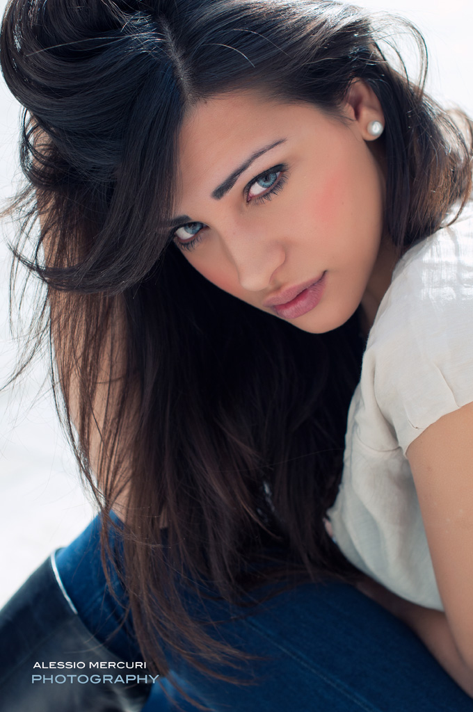 Una posizione della modella molto interessante . Mi piace molto la luce che quasi abbasglia in alto a sinistra e gli occhi poi !!