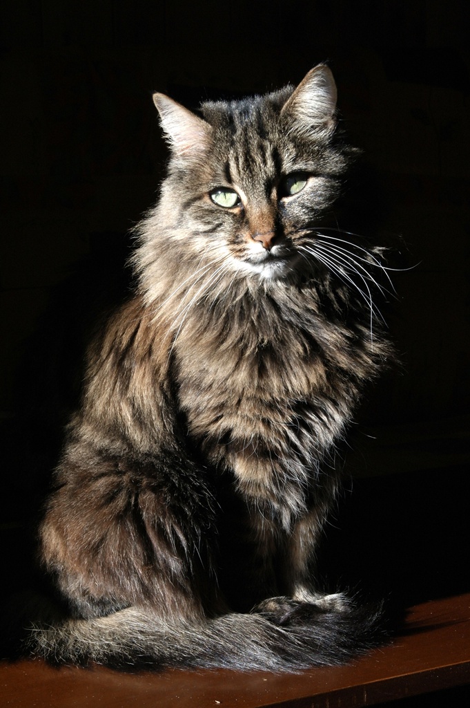 Molto bella la fusione tra le striature della micia con le zone scure,posizione e sguardo da attrice consumata