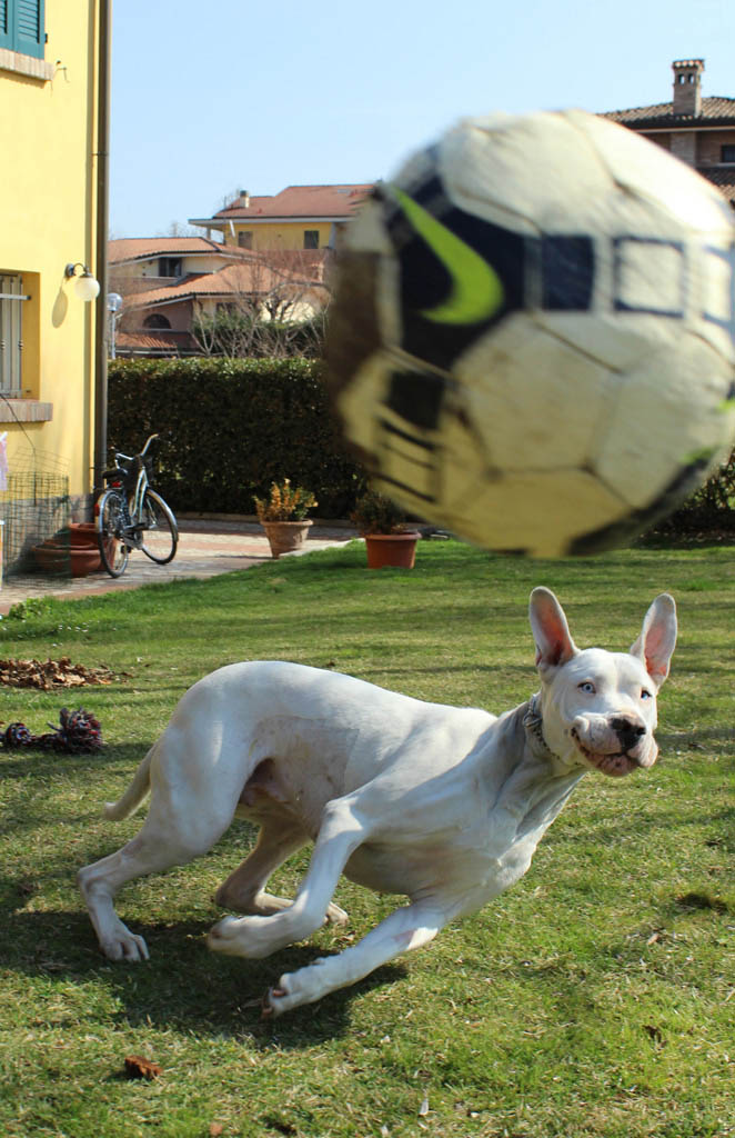 Il fuori fuoco (e mosso) della palla ci sta tutto ... la posizione dell'animale può sembrare sgraziata, ma è vera ...