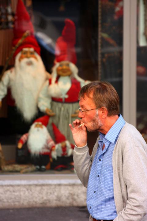 Nella composizione hai dato importanza alla famigliola di gnomi, che però restano sfocati e poco legano col pensoso fumatore.