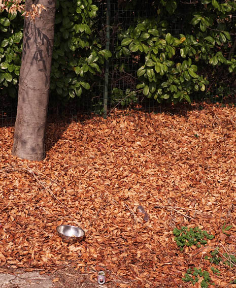 Mi pare di vedere una ciotola dell'ikea, un paio di occhiali, una lattina...su un tappeto di foglie morte; è un emblema della nostra vita? chissà...