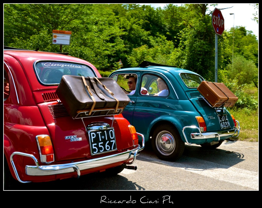 Le condizioni di ripresa nn erano le migliori: anche io ero su una di quelle "auto di lusso" poco piu indietro e ho cercato, sporgendomi dal finestrino di strappare con uno scatto il momento in cui le due auto si erano accostate sul ciglio della strada. Non riuscendo a ritrarle per intero tt e due ho cercato di focalizzarmi sul bagaglio li dietro che a me fa impazzire!!! Smile