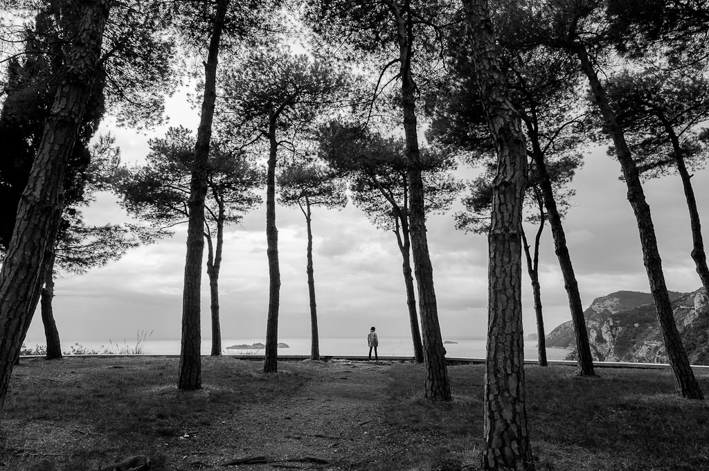 Mi piace molto; le gambe divaricate del soggetto in fondo ben piantate a terra così come i tronchi, danno veramente l'impressione di una sorta di 'umanizzazione' degli alberi, quasi partecipi della soltudine dell' uomo, complice anche l'atmosfera cupa della giornata nuvolosa.
