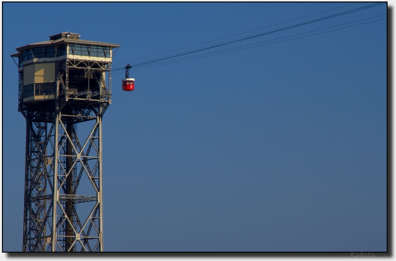 E se la cabina rossa fosse stata più avanti, così da bilanciare quell'eccessivo (a parer mio) vuoto sulla destra? Così com'è a me gli elementi paiono mal distribuiti dentro il rettangolo. Quel piccolo punto rosso ben isolato sul filo con il suo peso visivo secondo me avrebbe meglio occupato lo spazio se si fosse trovato più lontano dalla torre.