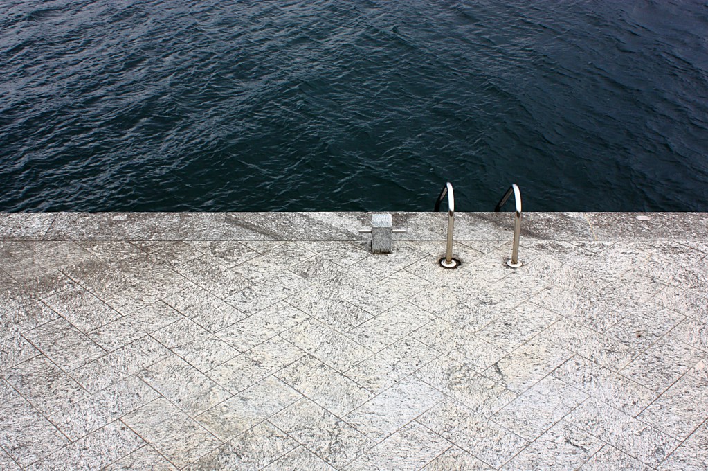 un buon composto di texture....l'ambientazione risulta sicuramente enigmatica..questo dovuto al profondo stacco tonale tra il chiaro-scuro....un tuffo inquietante..del quale non si conosce bene l'esito...e mi domando...un paio di ciabatte lasciate sul bordo avrebbero dato quel pizzico di sale in più?...scervellandosi in dove fosse finito il temerario tuffatore????