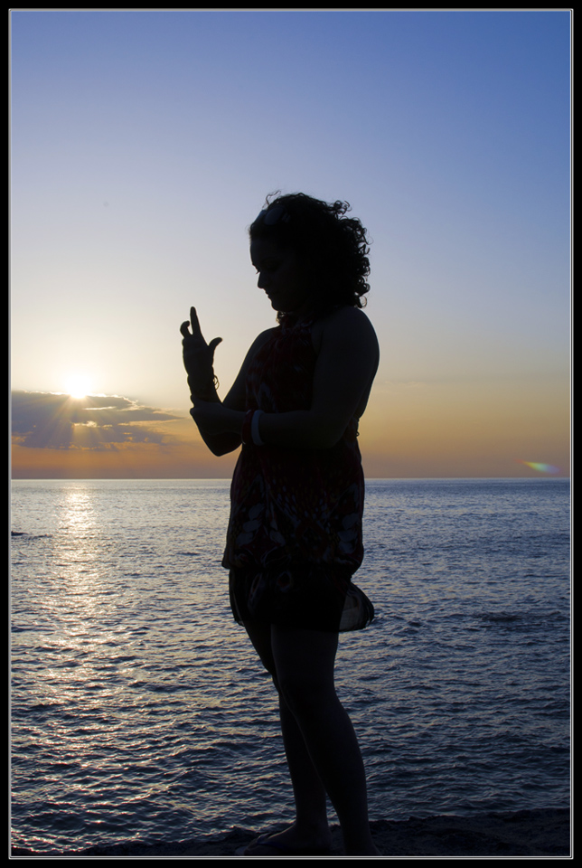 A mio avviso volendo fare una silhouette non avrei fatto l'intera persona tagliando il piede sinistro, ma avrei preferito una parte del corpo il viso ad esempio ma che si potesse vedere nettamente il profilo. Non si capisce bene cosa stia facendo con quelle dita.