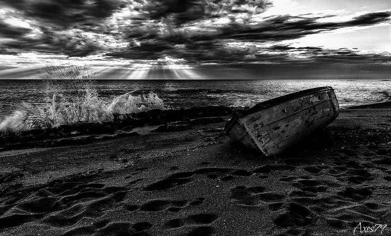Buono lo sviluppo della composizione e molto suggestivo il cielo. I toni molto bassi rendono drammatica la scena, ma a mio avviso, hai esagerato un pelino con il contrasto. La foto manca completamente di mezzitoni. _________________ Riccardo Bruno |