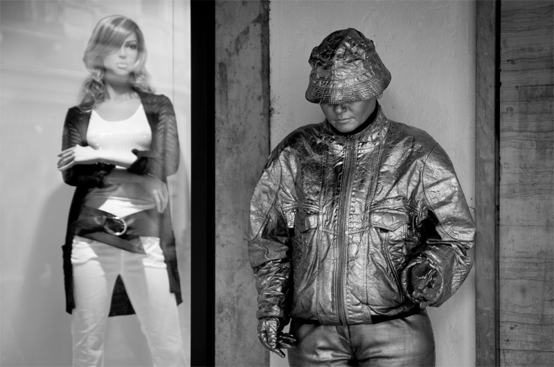 La scena acquista le caratteristiche di un dittico, con il manichino autentico affiancato dalla statua umana...