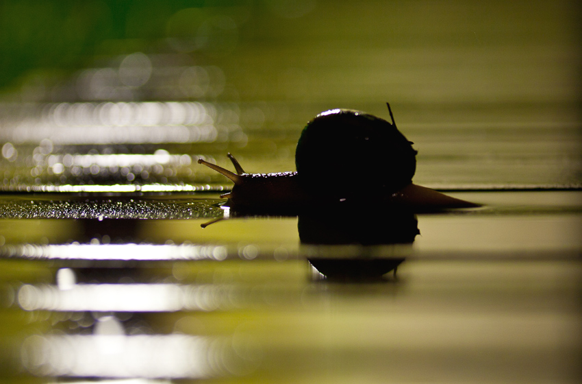 la lumaca era in viaggio fuori da casa mia, ho avuto il tempo di montare macchina e cavalletto, ma proprio lenta non era....sono sottovalutate... Wink