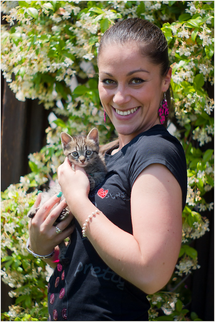 Bella allegra e sorridente..... sembri aver colto il consiglio di Aerre sulla foto precedente, qui anche il gattino guarda in camera.