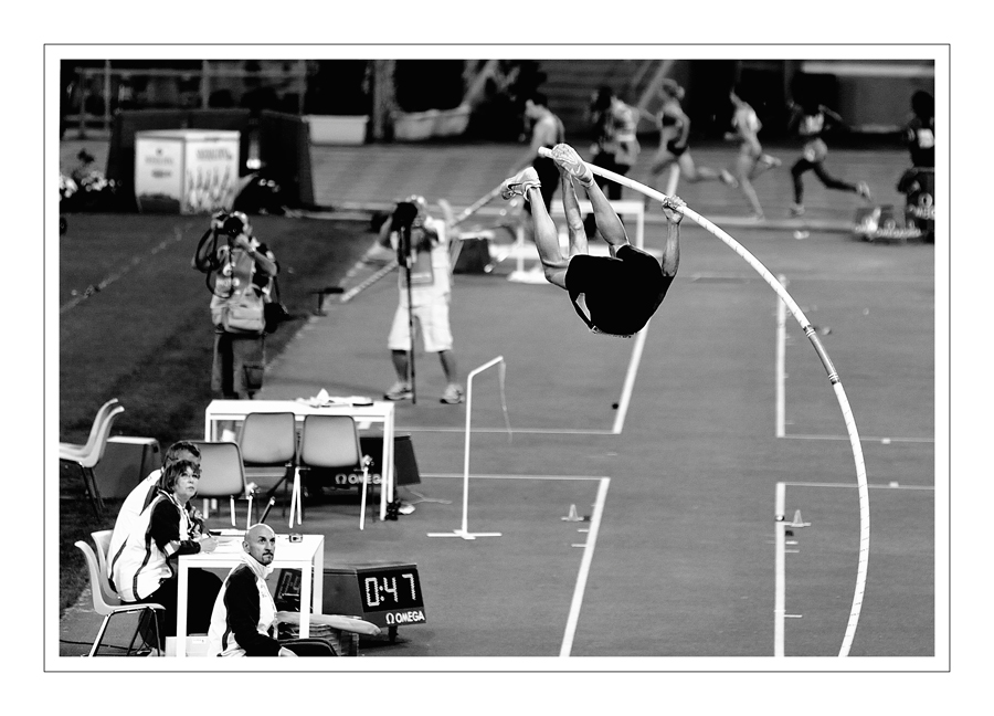 e mi piace particolarmente, oltre il momento colto, l'espressione attenta della giudice, pronta a scrivere il suo punteggio (è sopratutto lei che crea il percordo visivo che porta immediatamente all'altleta)