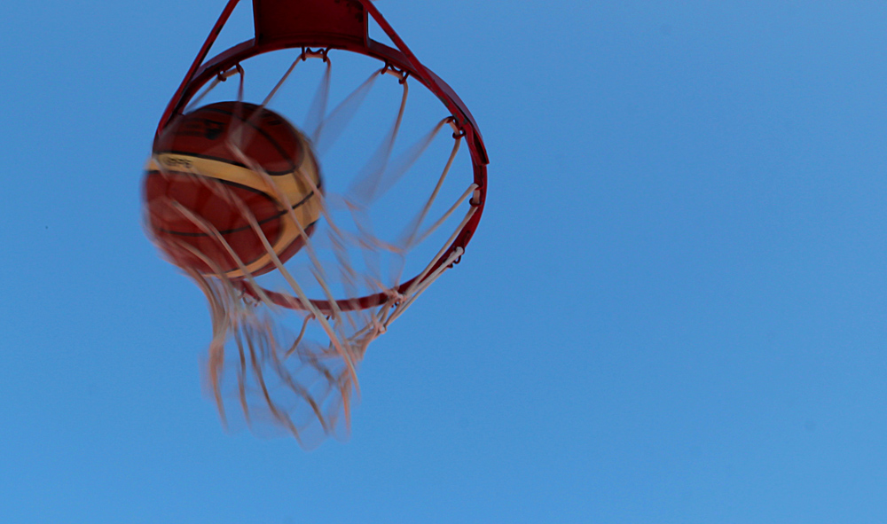 Per il mio personale gusto avrei incluso parte (se possibile) del tabellone oppure una mano (magari nella vuota area a destra) che spinge il pallone a canestro....