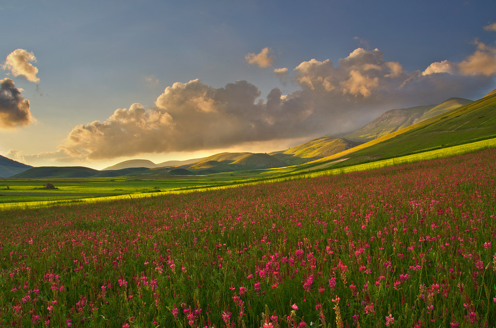 Un paesaggio la cui bellezza è stata esaltata da un composizione impeccabile. La massimizzazione della pdc, ha reso pregevolmente nitidi tutti i piani della scena, dal primo fiore sino all'ultima collina è tutto perfettamente a fuoco. Concludo per l'ennesima nota di merito per i colori che sono leggermente saturi, ma incredibilmente belli.