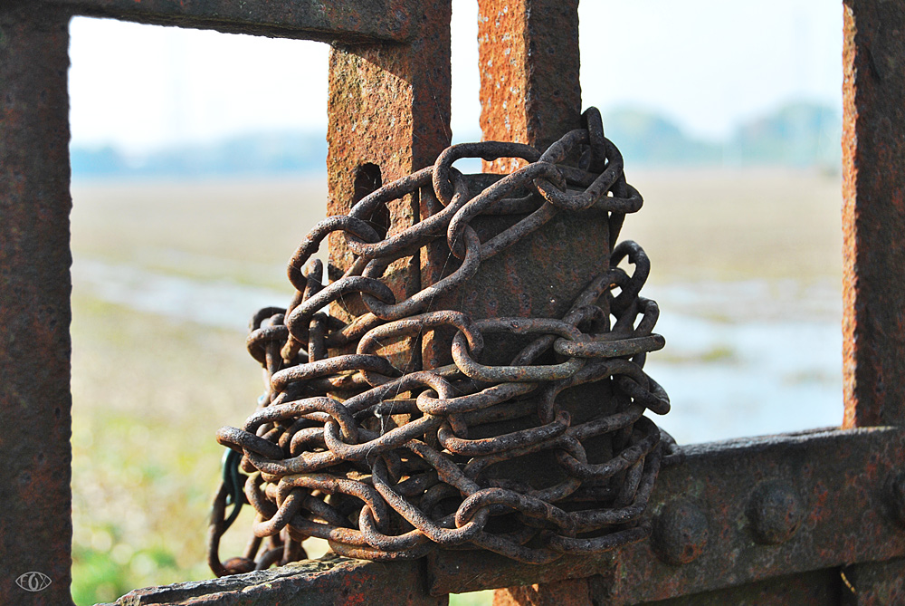 Trovo invece poco riuscita l'inquadratura, che avrebbe potuto essere più concentrata sulla catena proprio per far risaltare il bel colore della ruggine e il groviglio degli anelli.
