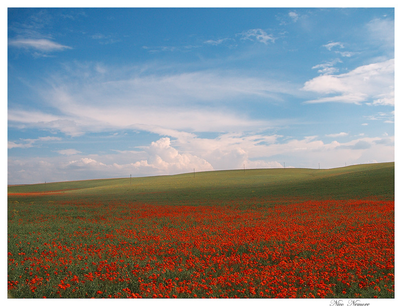 E' una fotografia che trasmette una grande sensazione di quiete... sono un po' in dubbio riguardo alla linea dell'orizzonte: il rosso dei fiori meriterebbe molto spazio all'interno della composizione, ma d'altra parte pure quel cielo ha uno suo perché, molto scenografico. In ogni caso trovo questa fotografia davvero piacevole e delicata _________________ WWW.PAOLODIFALCO.COM Canon 400D + Canon 7D