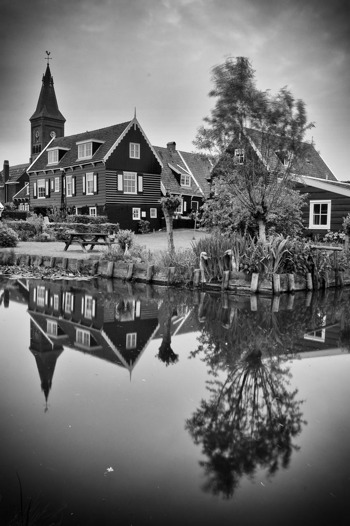 La prima cosa che mi ha colpito è il bellissimo bianconero ricco di dettagli nei neri e ancor più nelle ombre.... poi il bel paesaggio con il suo riflesso così abilmente ripreso prima e valorizzato poi.