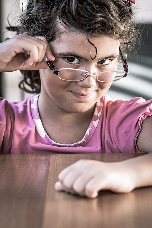 molto spiritoso questo sguardo fintamente severo che arriva da sopra le lenti. vedo un chiaro futuro da professoressa per la tua Matina .