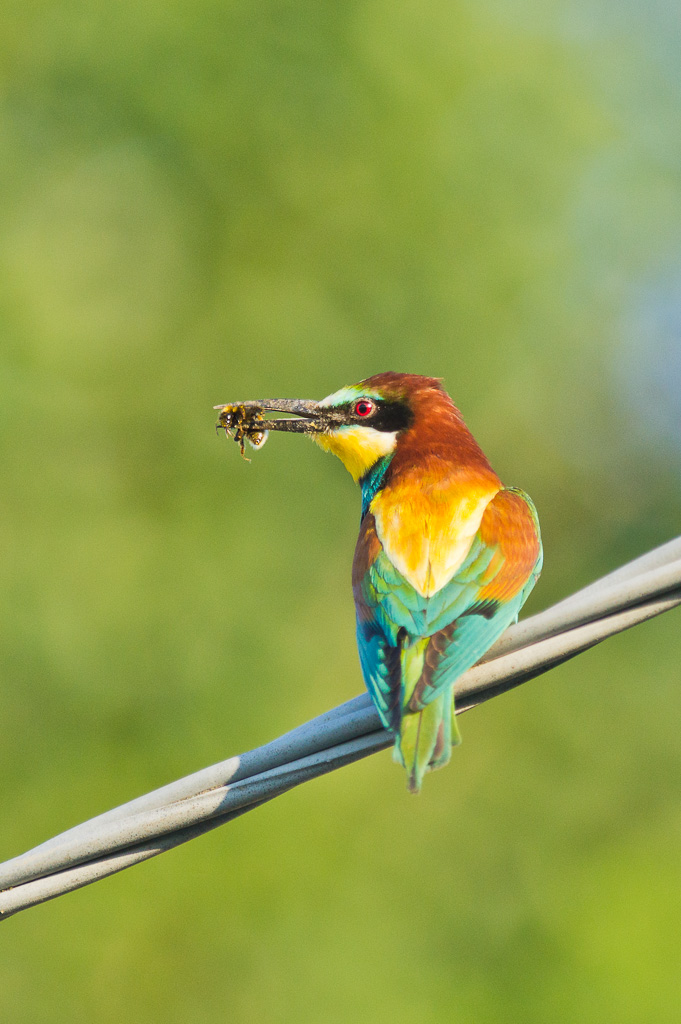 Dopo varie ricerche nella mia zona ho trovato questo bellissimo esemplare di gruccione. Per fine giornata sono anche riuscito a trovare i nidi, spero di riuscire a fare qualche bella foto mentre portano da mangiare alla prole, sperando che per il fine settimana non sia già tardi...