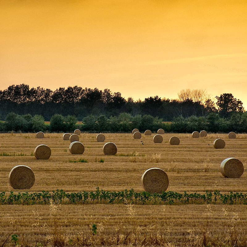 La foto mi piace molto, le balle con il loro riflesso di luce nella parte superiore bene si staccano dal campo. Bella anche la striscia verde che delimita gli spazi.