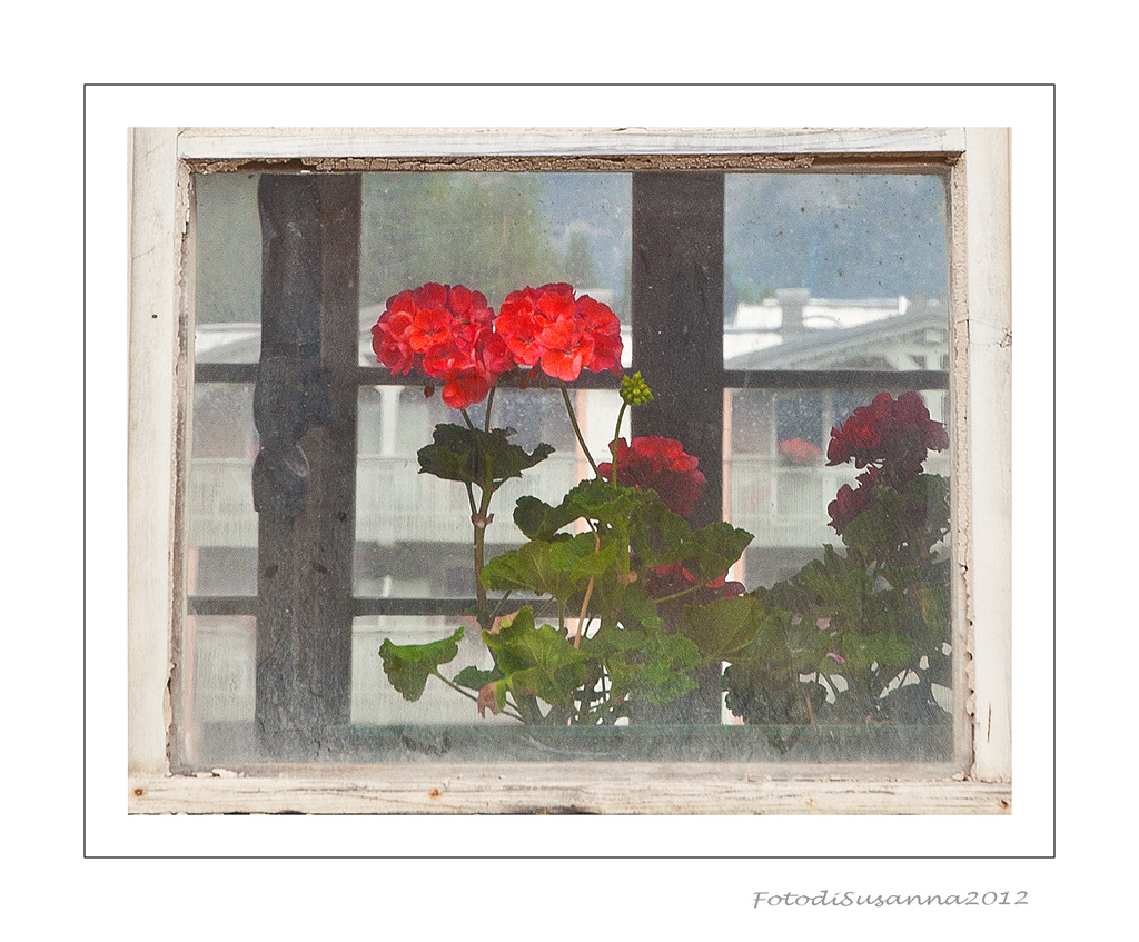 Sono contenta che vi sia piaciuta, ci sono stranamente molto affezionata a questi due gerani rossi dietro il vetro opaco di un vecchio capannone (o almeno credo fosse un capannone)..... |