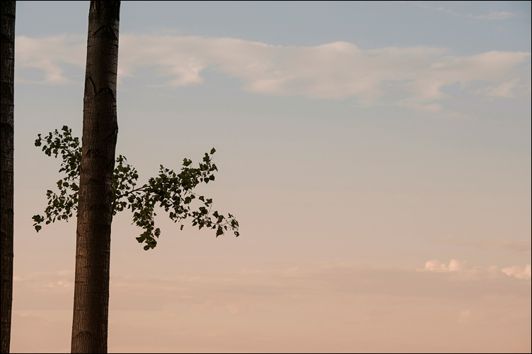 ...uno scatto che di primo acchito può sembrare banale ... ma sei riuscito a cogliere delle sfumature del cielo davvero delicate ... il tutto accentuato dall'albero (anzi i due alberti) in primo piano...