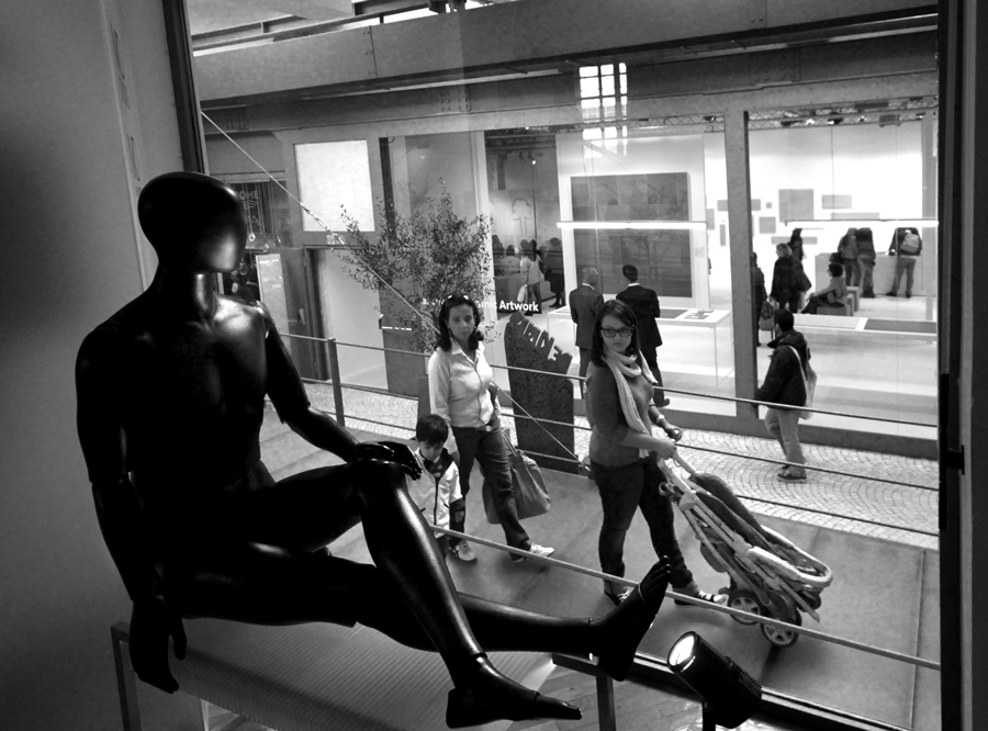 Il manichino sembra richiamare, a mio modo di vedere, il fotografo di questo scatto, che lì - dietro la vetrina - osserva...