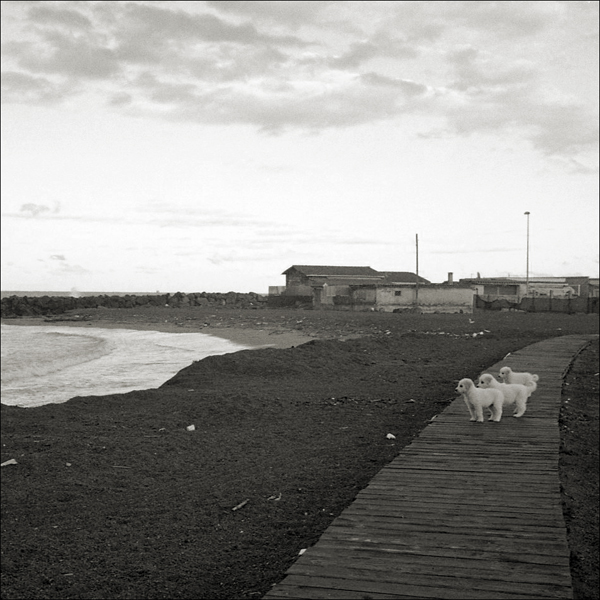 Ho ricnosciuto da lontano il tuo stile e le tue atmosfere... ma anche i cani sono quasi uan tua esclusiva. Trooppro cariniiii, posizionati così, in ordine preciso, davanti al mare...