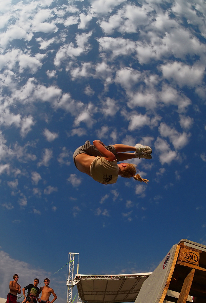 | Bujee ha scritto: | | Usando il pc, inizialmente, scorrendo giù, per un istante ho pensato che avessi fatto solo uno scatto del cielo, ma poi ho visto l'atleta, e poi ancora dopo la pedana, e dopo ancora i ragazzi nell'angolo. Mi è piaciuta forse per questa sequenza, che ha aggiunto dettagli sempre nuovi. E la ragazza, soprattutto, è molto brava:) |