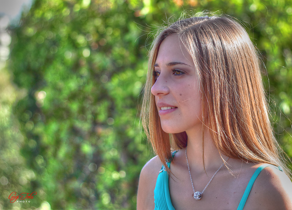La protagonista dello scatto è molto bella e sembra avere occhi di un bellissimo colore (particolarità che avrei valorizzato con una inquadratura meno di profilo che ci avesse mostrato meglio anche l'occhio distante. L'espressione e la postura appaiono forse un pochino rigide ed innaturali.