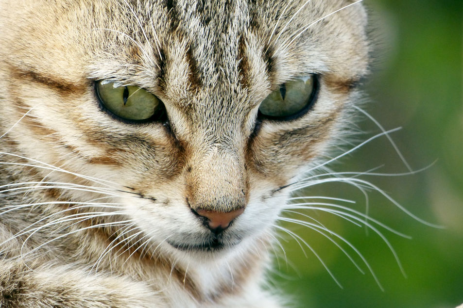Scattata di sera, la gatta era su un muretto e quindi alla mia altezza. Ho tirato un pelo su l'esposizione e abbassato il livello della regolazione dello scuro. Una piccola croppata per mettere meglio gli occhi sui terzi.