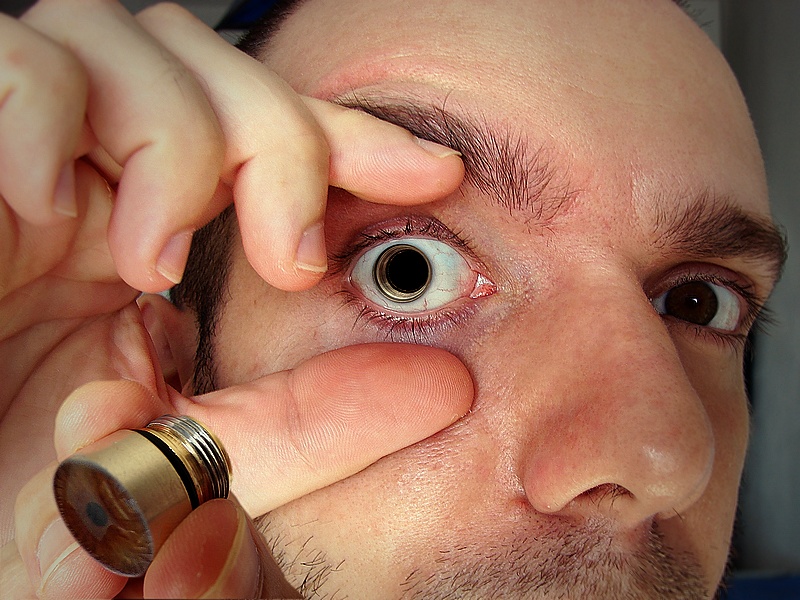 L'idea è veramente brillante, tuttavia come scrive andreaboni, sembra che manchi qualcosa per un miglior senso di realismo... magari "il contatto" dove poggia il polo dell'occhio-lampadina. Infine, dato il taglio conferito, avrei leggermente allargato l'inquadratura, aumentando la vignettatura, così da rendere il tutto più scenico.