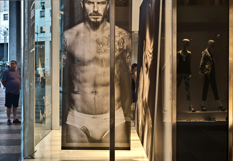 sandrino, grazie per la tua interpretazione, rendo il focus più diretto sul soggetto umano e la foto nel negozio, eliminando il terzo soggetto crea un altra foto e un altra interpretazione sempre interessante.