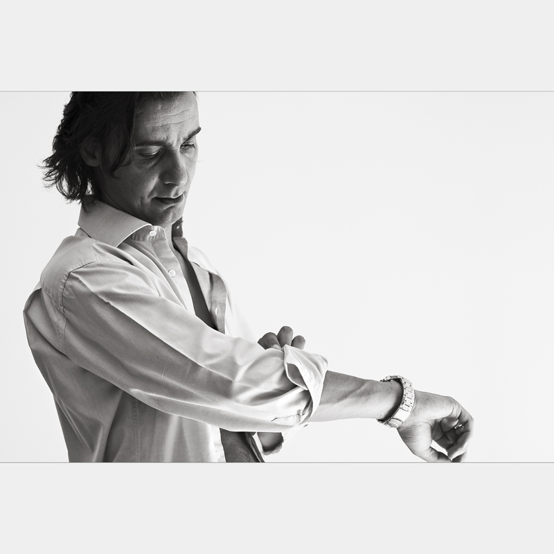 Davanti ad un lavoro così bello, dato che non percepisco soggettivamente disarmonia per questi taglii contrapposti, non me ne curo. Mi lascio catturare dai chiaroscuri, dalla nettezza del gesto, dalla eleganza piacevolmente disinvolta della vestizione. In un limbo astratto di bianco su cui magicamente risalta perfetto ogni particoalre delle pieghe della camicia, della ricaduta dei capelli. Espressione attenta ma senza pesantezza, con una sorta di cura un po' snob nel prepararsi ad un paicevole domenica mattina. Complimentissimi alla tua compagna fotografa, per un ritratto speciale.