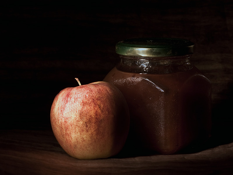 Dal titolo intuisco che la marmellata è coprotagonista inseme alla pesca, per come è composta la foto esiste solo la pesca. Non tanto per la posizione, quanto per l'illuminazione, il barattolo è decisamente sottoillumiato.