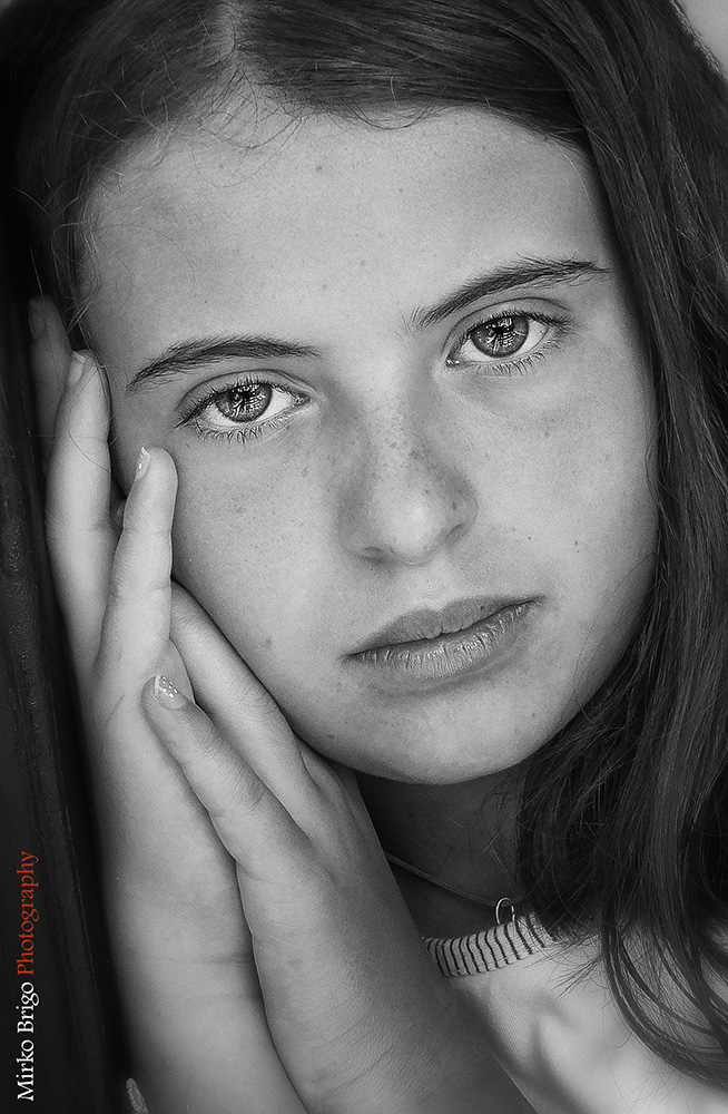 molto bella la posa delle mani che accompagnano la leggera inclinazione del capo. mi piace anche il taglio molto stretto che si concentra sullo sguardo e sul tenero gesto di accarezzarsi il viso. relativamente al contrasto generale, risulta eccessivo quello sull'iride degli occhi  _________________ Salvatore