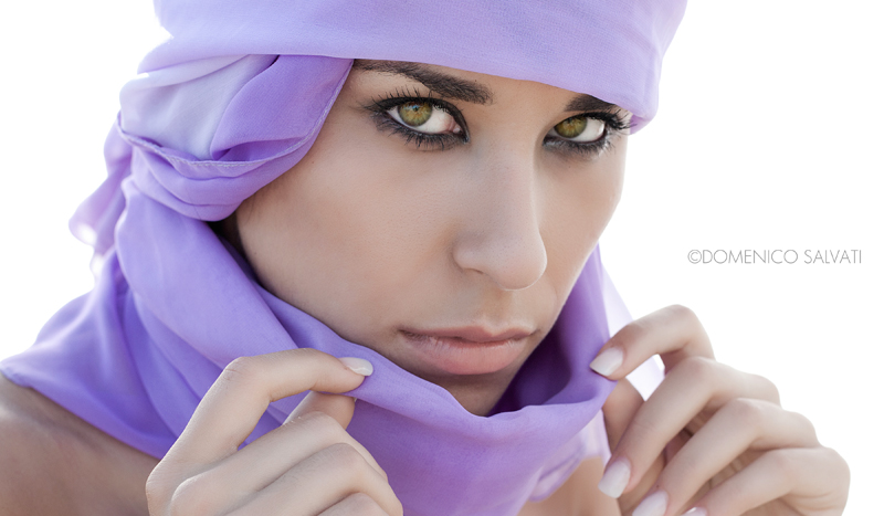 tralasciando gli occhi strepitosi mi piace la luce, la resa della pelle, i toni dei colori.peccato solo per le mani tagliate in basso.