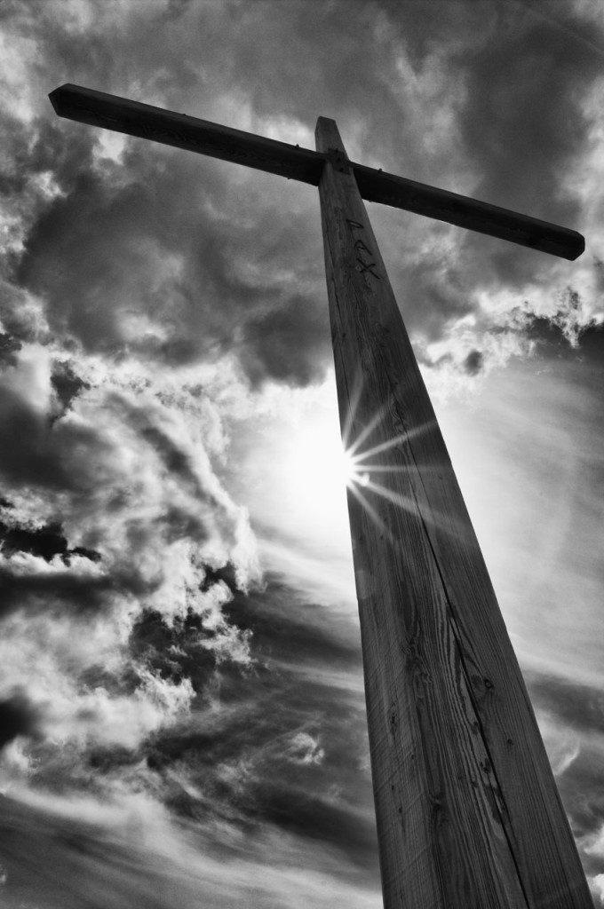 sicuramente una foto carica d'intensità, penso che la scelta del b\n accresca ancora di più il pathos che hai cercato di comunicare, belle anche le nuvole vorticose e l'angolazione dell'inquadratura... forse hai schiarito un po' troppo la croce, essendo in controluce appare innaturale così chiara specialmente nella parte inferiore