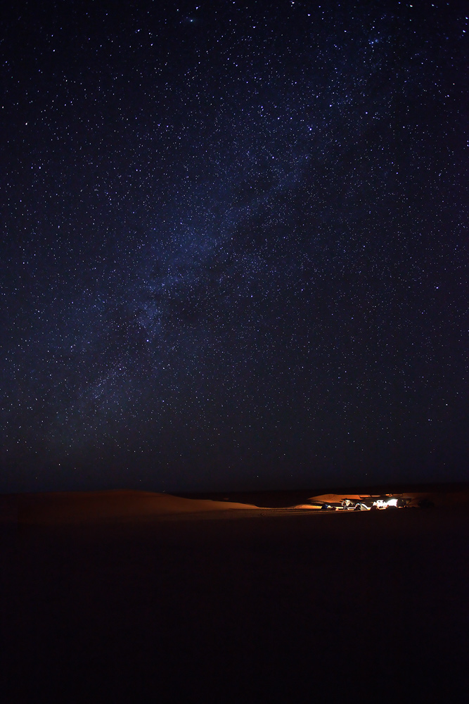 Bella questa visione della via lattea sopra al deserto. Un po' troppo alta l'arte scura in basso che non aggiunge niente alla foto.