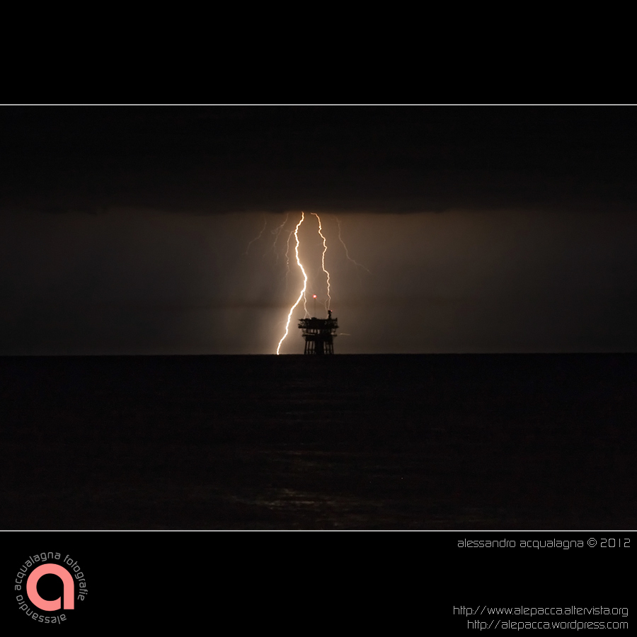 Una serata in spiaggia, in mezzo a coppiette in tenere effusioni, io e mia moglie a far foto ai fulmini.