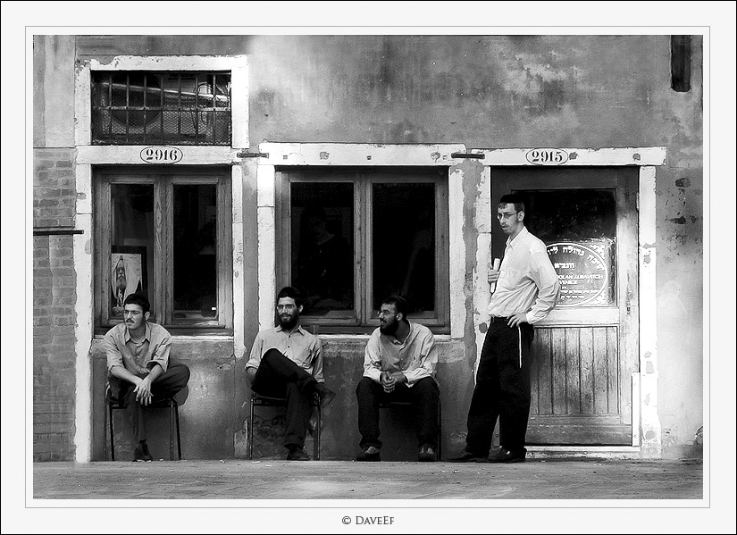 L'immagine è suggestiva ed illustra un momento di vita con i quattro uomini che guardano interessati verso un qualcosa che non conosciamo.