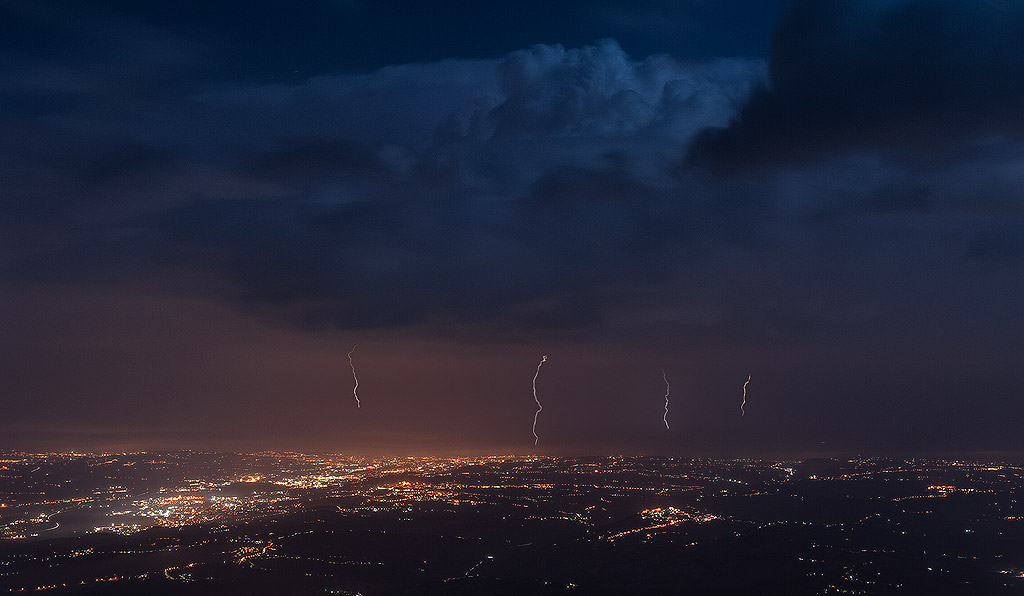 Il risultato ottenuto e' molto gradevole. I 4 fulmini i stagliano bene sul cielo tenebroso e la città con le sue luci e' ben relegata nel quinto inferiore lasciando grande spazio al vero protagonista, cioè il cielo. Si potrebbe discutere sulla opportunità o meno di unire più scatti per ottenere il risultato fotografico finale che dovrebbe essere la rappresentazione di un "unicum" irripetibile...ma sarebbe troppo "filosofico" e poi.....un po' tutti qualche volta "uniamo più scatti".....