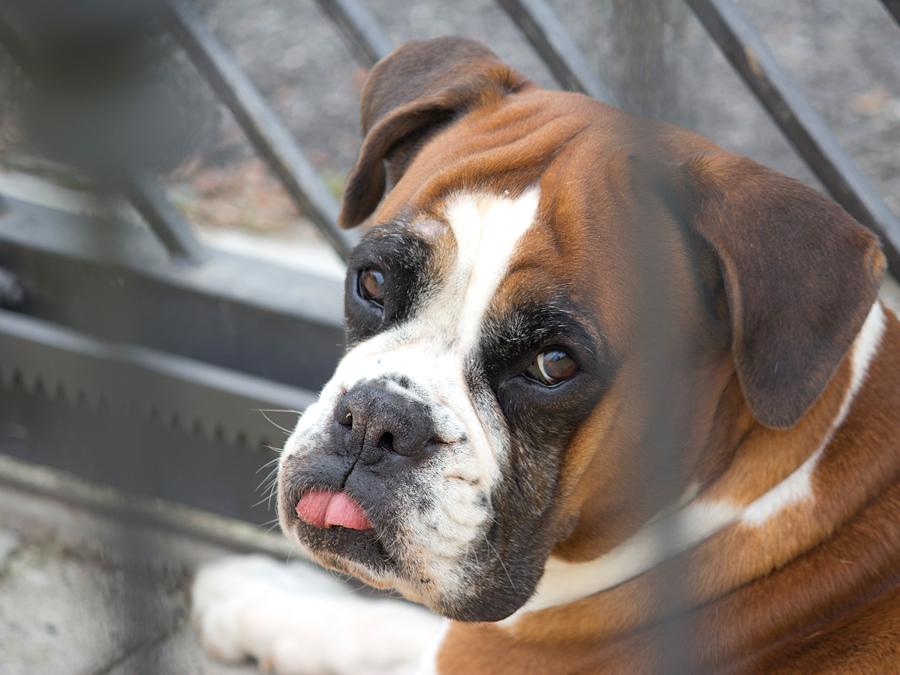 Se il cane non è tuo capisco che tu voglia avere tra te e il soggetto una robusta inferriata (non si direbbe particolarmente "feroce", sembra più che altro stia preparando una pernacchia, ma... non si sa mai ). Altrimenti, dal punto di vista fotografico, quelle due sbarre sfocate (più l'altra parte del cancello con tanto di cremagliera sullo sfondo) fanno tanto zoo e l'effetto complessivo non è affatto buono.