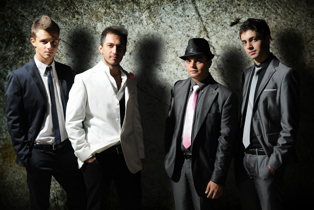Una foto fatta al volo a quattro ragazzi durante una festa di 18 anni. Sfondo sostituito in post.