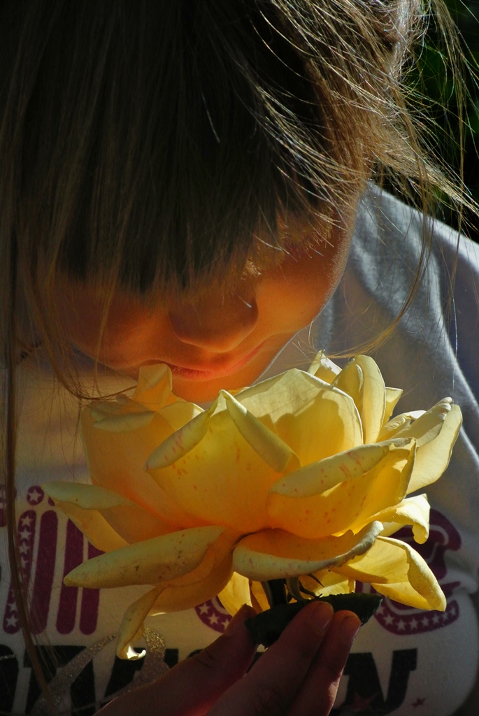 | ilioyumbo ha scritto: | Effettivamente mi pare inutilmente troppa la "porzione" di testa inquadrata. In particolare, in alto avrei inquadrato da un po' più su degli occhi in modo da focalizzare l'attenzione maggiormente sull'azione dell'annusare il fiore. Bello quello che sembra essere il riflesso giallo del fiore sul volto del bambino.Ciao
