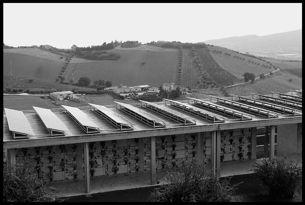 Penso che il titolo si riferisse ai pannelli solari più che la dualismo vita e morte, in questo senso penso che la vista frontale non avrebbe reso l'idea. Comunque l'idea è interessante ma andrebbe sviluppata meglio, a colori o con un bianco e nero meno grigio... _________________ A pellicola: Nikon, Contax, Pentax, Leica, Fuji, Yashica, "roba" russa ecc.
