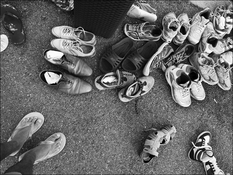 Nel momento in cui ho scattato non c'era nessuno con i piedi scalzi, siccome non potevo intrattenermi oltre ho deciso di includermi con i miei nelle ciabatte.