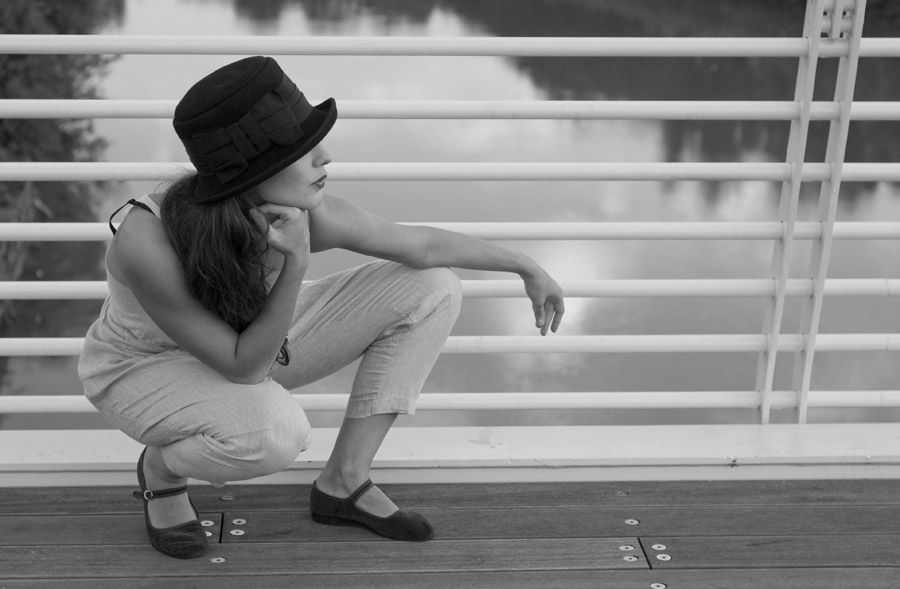 In questo scatto mi ha colpito la posa. Strana, in parte innaturale ma comunque bilanciata. Abbinata alla scelta di nascondere gli occhi ed alla presenza importante delle linee della ringhiera, garantisce un impatto visivo particolare. Bravo. Ok!