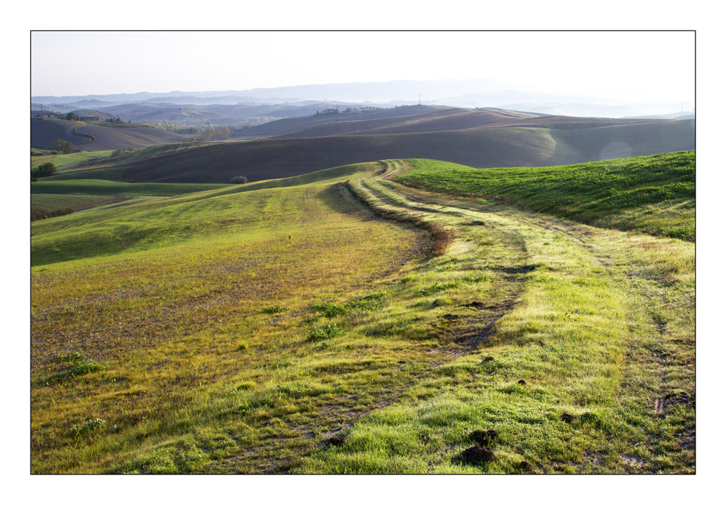 La composizione c'è tutta e quella stradina porta veramente molto lontano con l'occhio. La luce, se devo essere sincero, non mi sembra la migliore e anche il controluce, pur non avendo inserito il sole, ha praticamente "rovinato la parte alta (soprattutto il cielo e la parte dx) della foto.