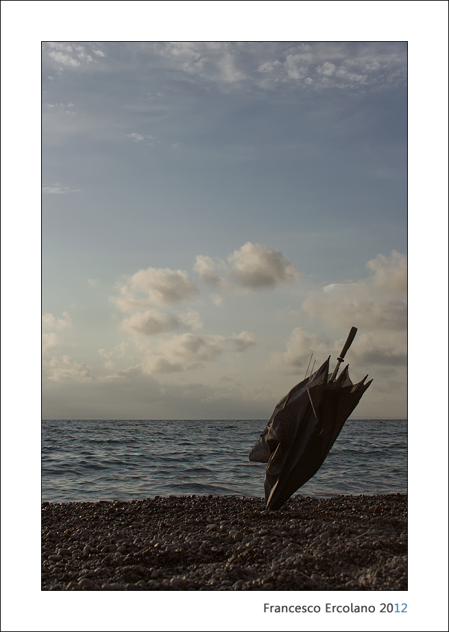 A questo ombrello ho scattato una lunga sequenza di foto, ma...ben due anni fa'...Ho il terrore delle bruciature e credo di aver sottoesposto...il guaio è che sul mio monitor "regge" bene...ho messo a fuoco sul manico, per cui magari risulta "impastata" perchè le pietruzze del primissimo piano non sono a fuoco, ma era un effetto voluto...eheheh...ne avrei altre versioni, magari tra altri due anni...